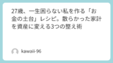 「貯金はあるけど、これで足りるの?」「将来のために今を楽しんじゃダメなの?」 27歳。キャリアもプライベートも欲張りたい世代だからこそ、漠然としたお金の不安はつきまといます。 でも、私は「守りのお金」の基準を決めてから、今の生活を心から楽しめるようになりました。