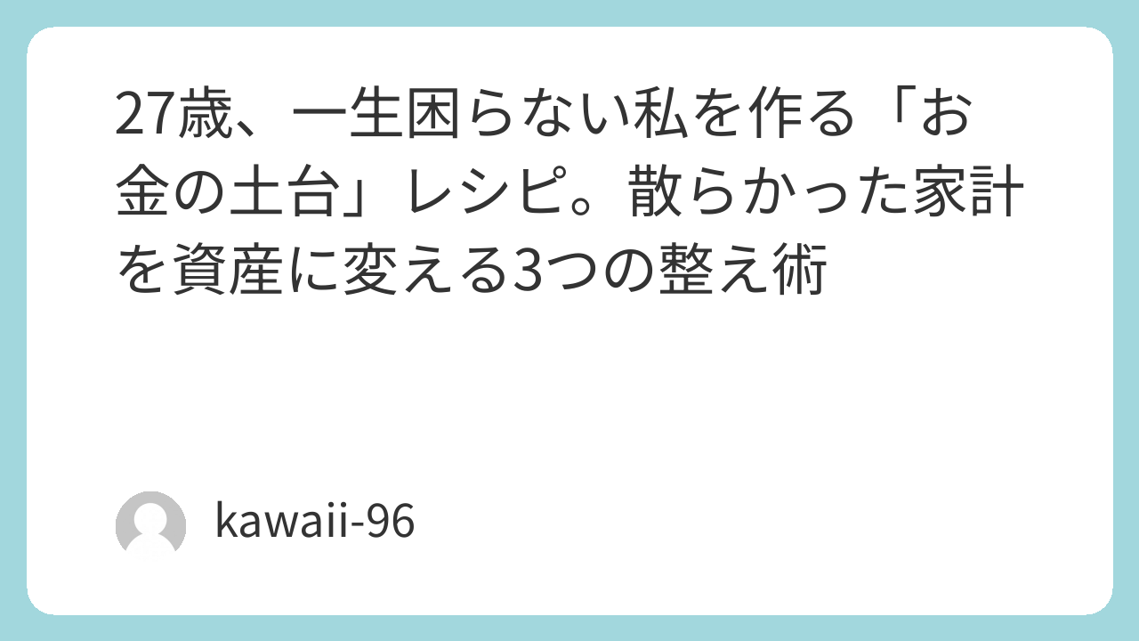 「将来が不安で貯金しなきゃと思うけど、何から手をつけていいかわからない…」 かつての私もそうでした。でも、27歳は「攻め」も「守り」も両方欲張れる最高の時期。 まずは、一生困らない自分を育てるための「土台(家計管理)」を整えましょう。